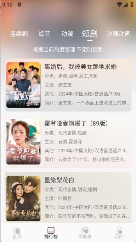 3、“排期表”提供每天更新的影视情况。
