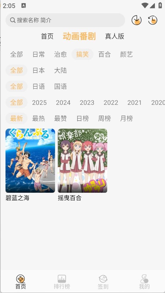 2、首页有很多的动漫资源类型,可以按照时间、类型以及语言进行筛选。