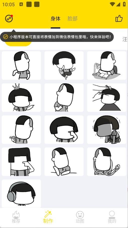 2、“制作”页面有很多的表情包素材,选择喜欢的点开。