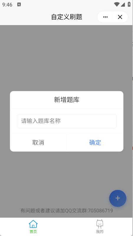 1)在题库列表页面,点击右下角“+”号按钮,弹出题库创建窗口。