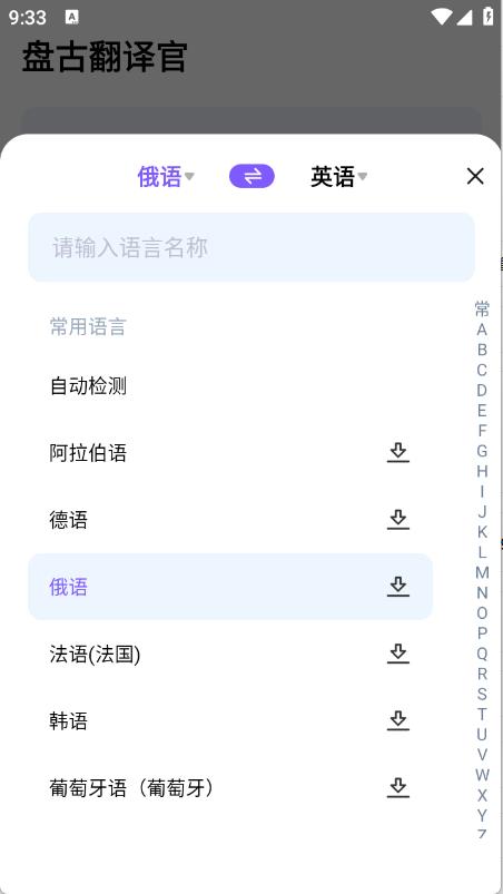 2、进入到首页之后,选择要翻译的语言。