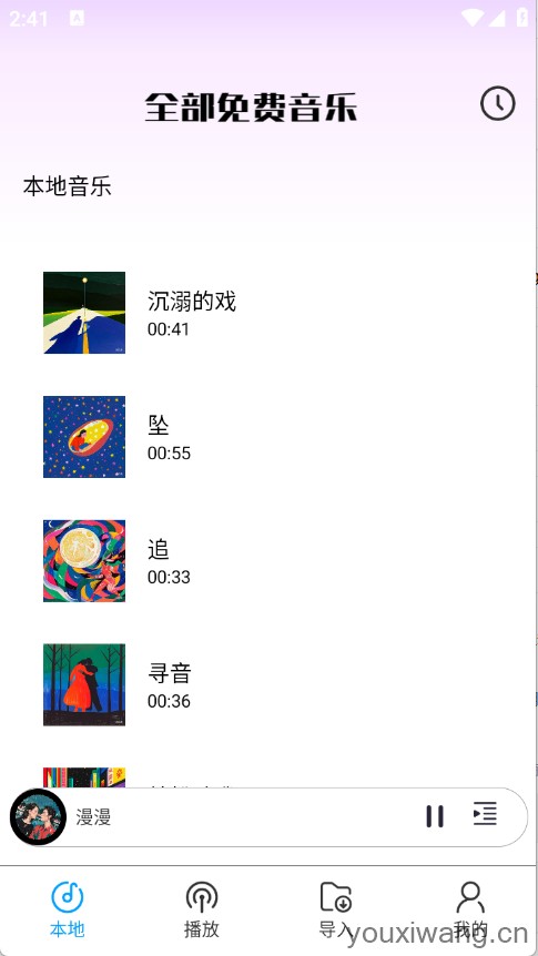 全部免费音乐,免费听音乐的平台,涵盖了经典老歌以及流行音乐等都有,所有的音乐资源都是免费的,直接点击就可以播放了,可以创建歌单,将喜欢的音乐加入歌单,随时打开都可以进行播放,享受便捷的听歌体验。