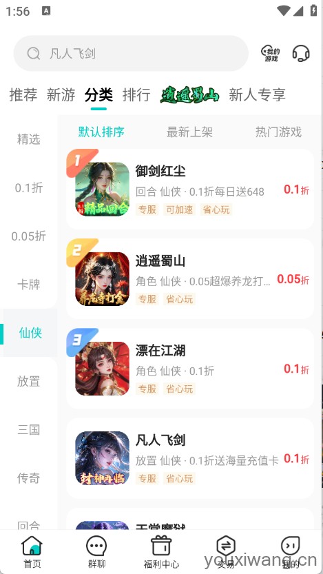 3、游戏种类很多,有仙侠类,角色扮演类,也有三国类,可以根据关键字进行搜索。