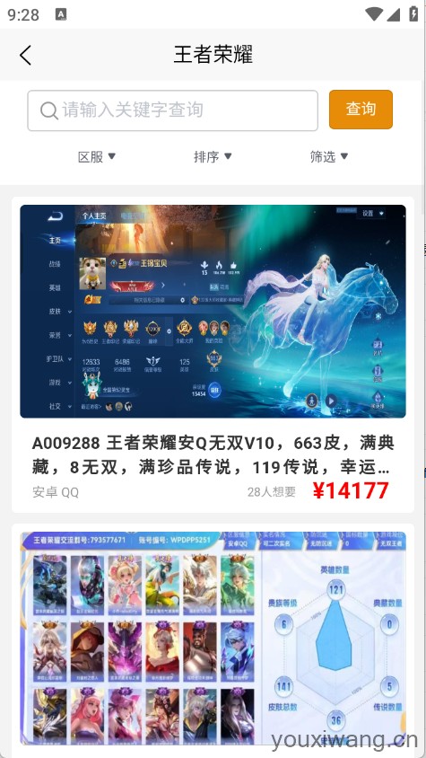 2、里面可以提供更多不同的游戏账号,用户可以根据自己的需求来购买账号。