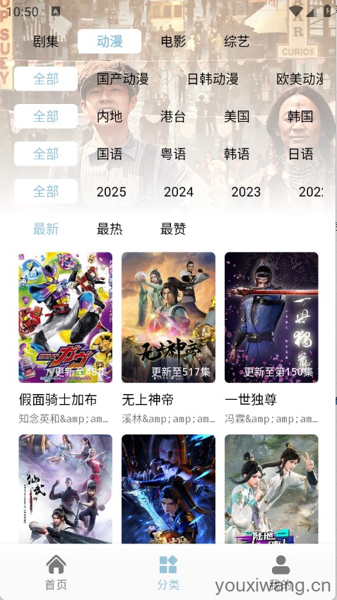 3、分类将影视按照年份、题材以及地区等进行删选。