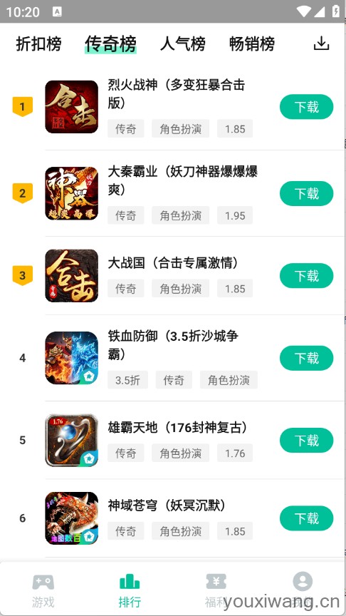 逍遥折扣盒子,这里拥有很多的游戏资源,回合、三国以及传奇等类型都有,每款游戏都会有详细的介绍以及截图,另外游戏资源下载速度快,另外还会根据玩家的喜好智能精准推荐,游戏资源更新速度快,满足玩家的玩游戏需求。