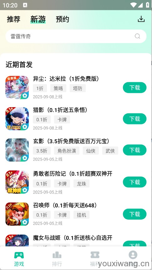 2、新游榜:展示最新上线游戏,抢先体验新鲜玩法。