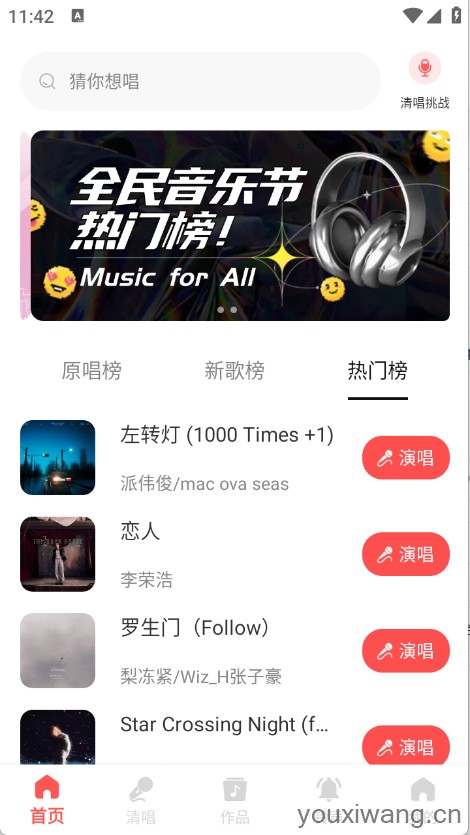 全民免费唱歌,随时在手机上面进行k歌的软件,不管是经典老歌还是流行音乐等类型都有,可以录制自己的作品,还具有纠音功能,另外所有的音乐资源都是免费的,全方位满足用户的唱歌需求。