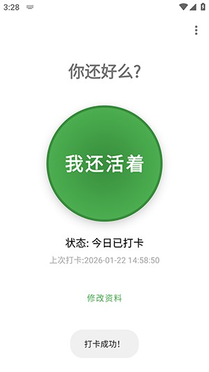 3、进入之后点击我还活着即可打卡成功。