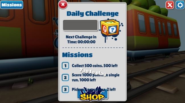点击左上角的“missions”可以查看任务,当前提供了3个任务,分别是收集500个金币、分数达到1000以及捡起2个喷射道具。