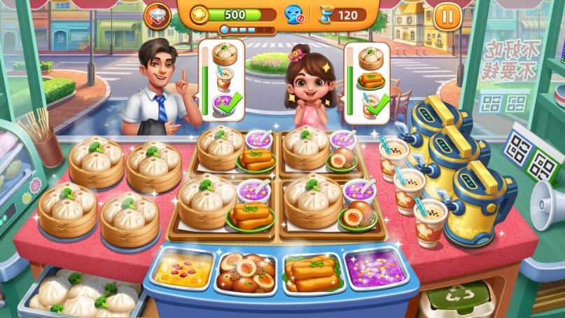 《小镇大厨》的关卡设计充满了创意和趣味性。除了传统的金币收集关卡外,还有盘子收集、爱心收集以及连连上菜等丰富多样的关卡目标。这些不同的目标要求你灵活运用各种策略来达成。例如,在爱心收集关卡中,你需要密切关注顾客的心情值变化,及时为他们送上满意的美食以恢复心情;而在连连上菜关卡中,则需要尽可能地提高连击次数以获得更多的额外金币。