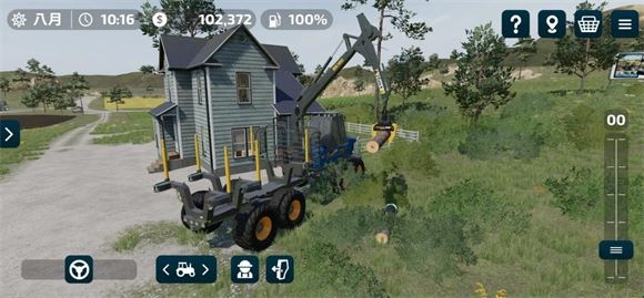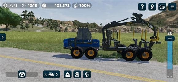 3、游戏中的一些农用车辆是由两个部分组成的,只有将两个部分连接在一起才能发挥对应的效果,当玩家驾驶车身抵挡配件所在位置后就可以自动连接,不需要点击任何按钮,在使用时需要点击下方的扳手按钮才会开始工作。