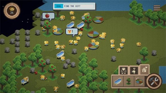 2、正式开始后点击右下角的按钮来放置不同的道具培养小人。