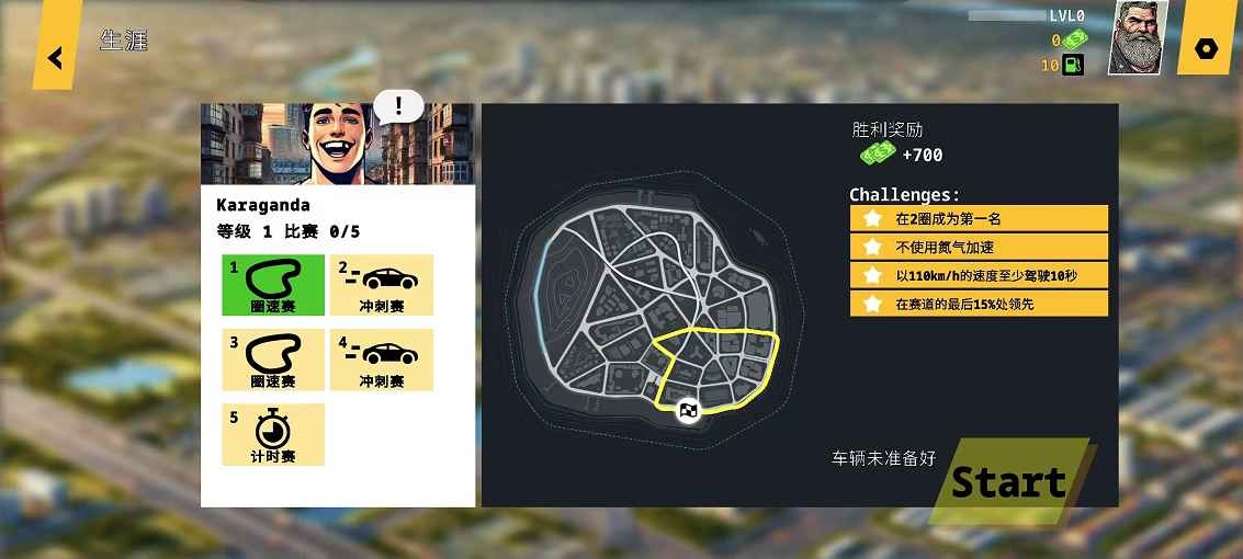 2、起好名字后会开始一场竞速比赛,左边控制转向,右边是油门和刹车,抵达终点就可以了。