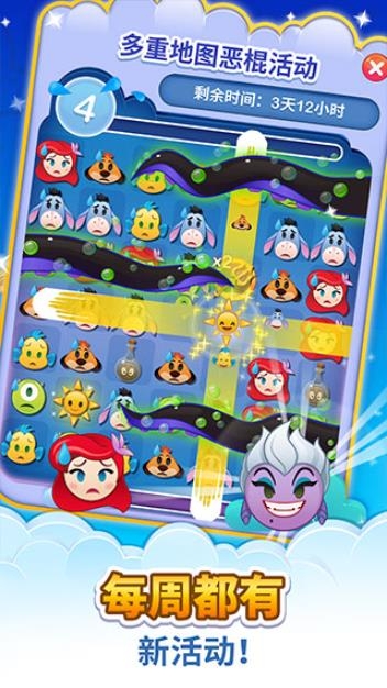 2、游戏内有着超过400个迪士尼的表情符号角色和物品可以去收集,在享受趣味消除的同时也能满足你的收集欲望。