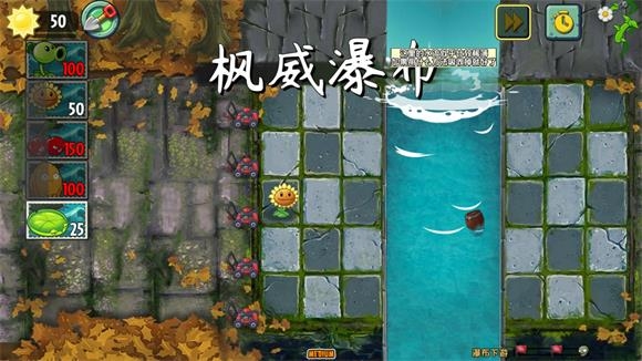 1、隐藏关在瀑布1-2,植物必须要有樱桃炸弹、荷叶、车前草才可以出发隐藏关,如果没有可以先通过几关获得植物再回来挑战。进入关卡后先攒够足够的阳光,需要325阳光,正好是两个个荷叶、一个车前草、一个樱桃炸弹,攒够阳光后先将两个荷叶放到瀑布前。然后放置车前草,点击车前草来吸水,吸完后会出现一个洞穴,这时用樱桃炸弹炸开,然后点击洞口就可以进入隐藏关卡了。