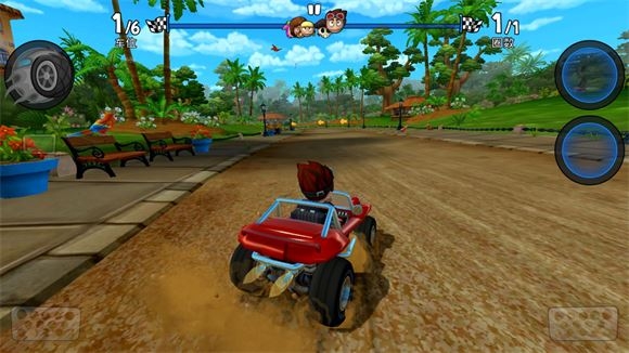 2、游戏内有着12条壮观的赛道,恐龙出没的丛林,熔岩喷涌的火山,美丽的海滩等等,将会给你独特的赛车体验。