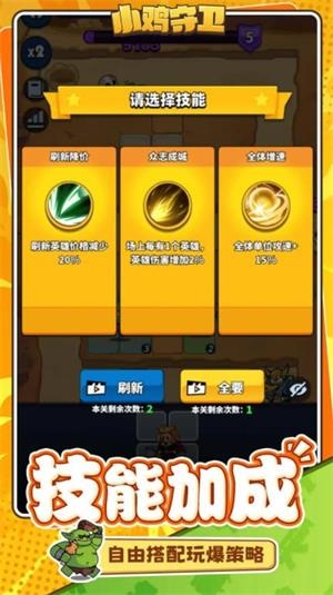 小鸡守卫,Q版画风的塔防游戏,玩家将召集不同属性的影响来对抗怪物。在小鸡守卫中有很多英雄可以让你招募,丰富的关卡可以让你自由选择挑战,各种各样的怪物将等你去消灭,培养你的英雄提升战斗力,搭配各种阵容来击退所有怪物保护你的安全。