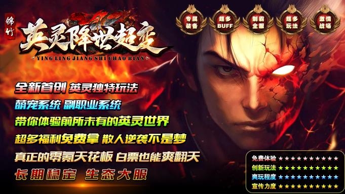 锦竹英灵降世超变,195单职业神器超变版本,独创英灵玩法,丰富多样的英灵可以化身,带给你前所未有的激情体验!超多Q萌可爱的灵宠可以领养,不仅外观好看,而且还能提供大量惊喜属性,助你轻松的打宝升级!多个大陆任你自由探索,所有一切皆可靠打获得,真正的零氪天花板,白嫖一样能够通关,散人也能逆袭当大哥!