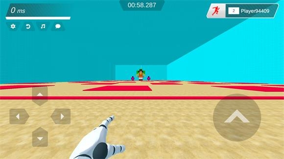 2、进入地图后左边控制前后左右,右边控制跳跃,操控角色前往终点就可以通关。