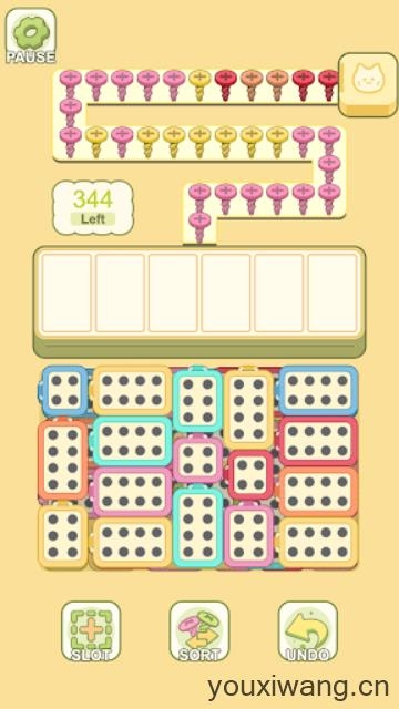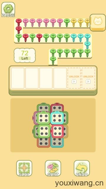 2、点击下方的螺丝盒就会放到中间的空位,上方对应的螺丝就会自动放入其中,放满即可拿走。