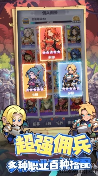 1、有不同职业的角色可以让你去招募来搭配阵容,各种职业可以让你体验到不一样的闯关乐趣。