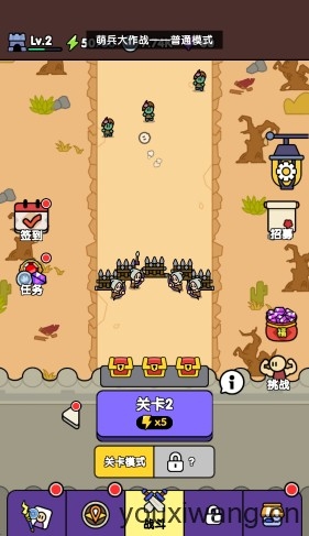 萌兵大作战,一款简单又好玩的策略塔防手游。在游戏中,我们将会通过合理分配资源来不断召唤葛洪不同类型的小兵,组建一支强大的军团来抵御敌人的侵袭,并且击败敌人会提升你的等级,从而可以在随机的技能卡牌中去组合出自己的技能流派,让每一次战斗都有着不一样的精彩体验!除此之外,我们可以不断的去解锁更多不同形态的小兵,根据他们的能力来自由组合不同的阵容,灵活的应对各种挑战。