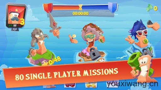 3、游戏特色:新作最大的变化就在于增加了单人游戏的可玩性,各种关卡等着你来挑战。在这款新作中,共计 33 种武器让游戏的策略性更强、变化更多,共计 80