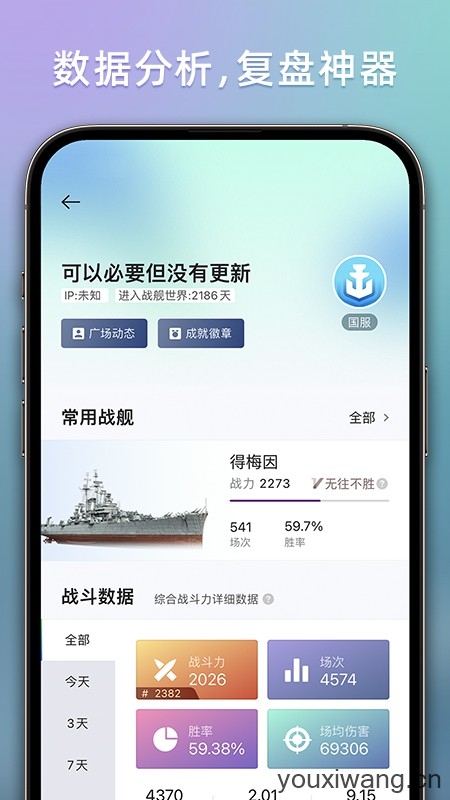 战舰助手,是为战舰世界游戏玩家打造的官方游戏助手,提供详细且专业的游戏资讯以及攻略,提升玩家的游戏体验,可以查看其他玩家的成绩,与各位玩家们一起共同交流心得,帮助玩家获得游戏的胜利。