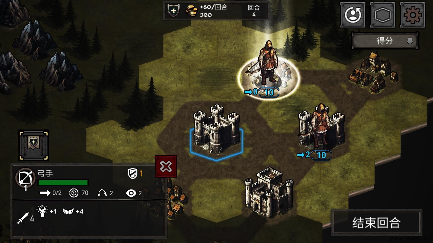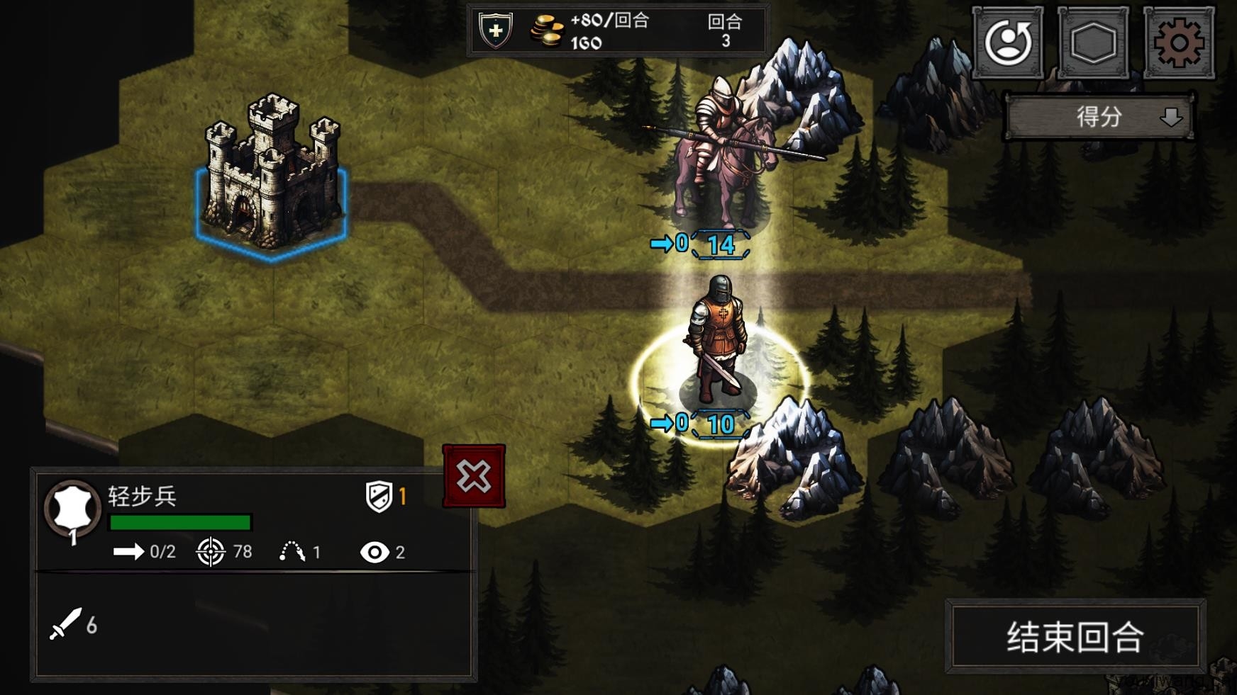 4、每个棋子每回合可以完成的行动是有限的,当所有棋子全部行动后就需要结束回合。