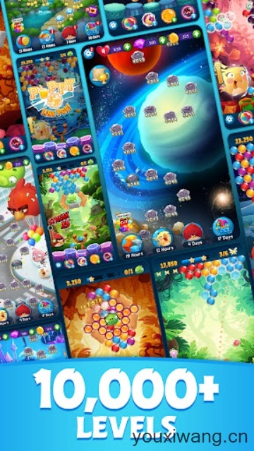 3、在经典的泡泡龙玩法上加入更多创新内容,例如连续消除激活小鸟技能等等,让你体验更加有趣的泡泡大战。