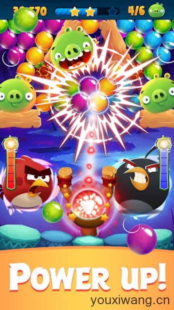 1、众多经典角色都会悉数登场,怒鸟红、飞镖黄、炸弹黑、史黛拉等等,和你一起畅爽体验泡泡大战。