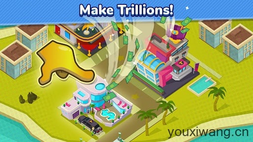 点击暴富(Taps to Riches),一款玩法十分休闲有趣的放置类模拟经营手游。在这里你将会看到有3D引擎所制作的各种精致场景,每一处细节都刻画的十分细腻,你手底下的建筑将会随着升级逐渐变得华丽,让你能够非常的代入,沉浸式的去享受方盒子经营的乐趣!在游戏中,我们需要从零开始建设自己的帝国,通过建造各种建筑来为你提供收入,这些建筑只需一小会就能为你带来大量的资金,让你能够不断的发展下去,并且还有着任务、成就、业务等多方面的内容可以体验,整体可玩性还是非常高的,简单的指尖点击也会带给你不一样的全新体验!