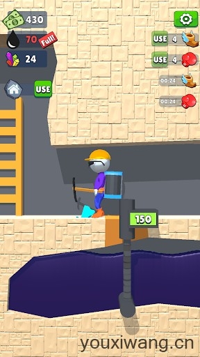 采油小生(Oilman),一款以采集石油为主题的模拟经营类手游,由知名厂商Voodoo所推出,画风清新简洁,人物都是魔性搞笑的橡皮人,玩法也是相当的休闲简单,都秉承了该厂商的一贯风格。在游戏中,我们需要扮演采油人,拿起自己的镐子开采矿石,寻找石油进行收集,随后可以将石油和矿石出售来赚钱,这样就能够去升级工具,开采更多矿井,提高整体的开采效率和收益。