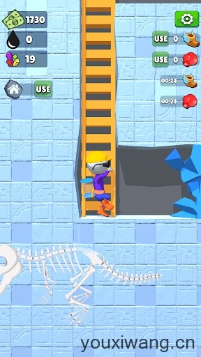 1、进入游戏后,拖动屏幕控制角色移动,靠近矿石后即可开挖。
